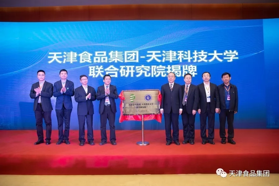 簽約儀式結束后,張勇和韓金玉共同為“天津食品集團-天津科技大學聯合研究院”揭牌,標志著雙方聯合建設以開放式研究院為代表的科技創新載體正式拉開序幕。