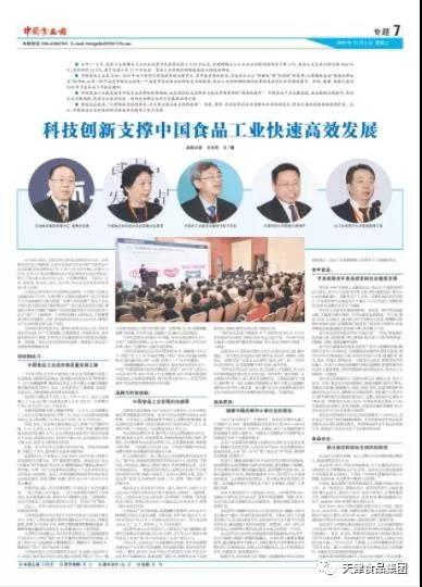 《中國食品報》昨日頭版在《秋糖會給天津食業(yè)帶來了什么?》報道中,在分析此次糖酒會給天津市帶來的影響時,對集團在糖酒會中參與的各項工作進行了全面介紹;第7版整版篇幅,以《科技創(chuàng)新支撐中國食品工業(yè)快速高效發(fā)展》為題,深度報道了此次由集團和市食品工業(yè)協(xié)會主辦的“天津食品行業(yè)高質(zhì)量發(fā)展高峰論壇”的詳細情況。