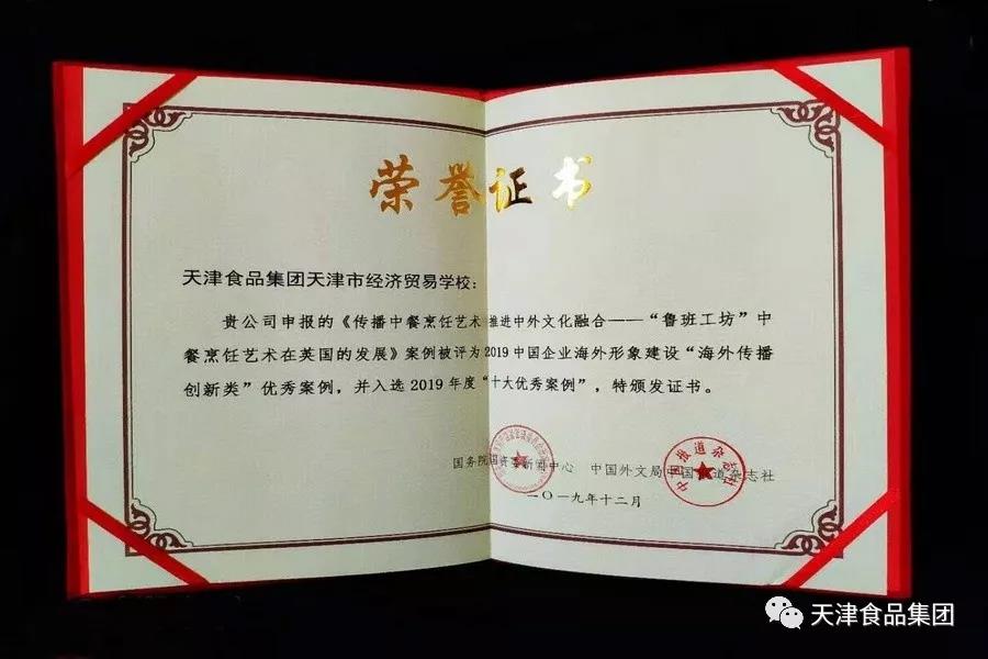 集團所屬天津市經濟貿易學?!?ldquo;魯班工坊”在英國落地開花》案例榮膺“2019中國企業海外形象建設評選十大優秀案例”和“海外傳播創新類優秀案例”兩項大獎,并將作為優秀案例編入《出海者:中國企業海外形象建設案例集2019》出版。