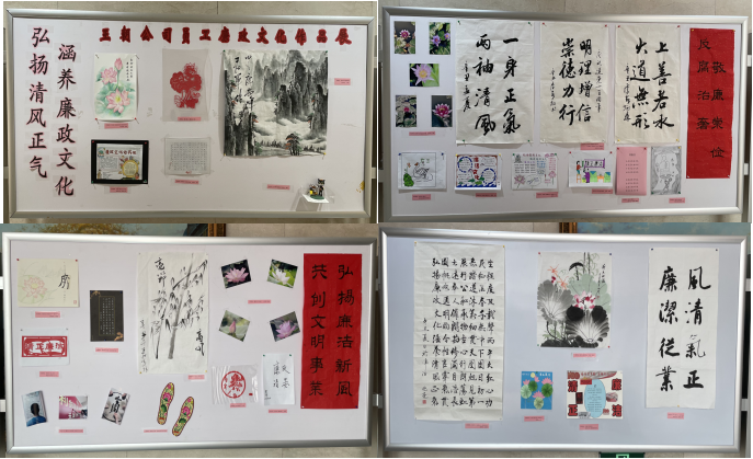 本次主題廉政文化作品展旨在推動黨史學習教育與正風肅紀工作相結合,筑牢黨員干部廉潔履職思想防線,不斷提升公司廉政文化建設水平。5月初面向全體員工開展廉政文化作品征集活動以來,得到了廣大職工的積極響應。活動共征集到包含書法、繪畫、剪紙、攝影、工藝品制作、手抄報等多種形式的廉政作品30余件,經過集體評選,選出一、二、三等獎和紀念獎作品分列四組展板,全部進行展出。