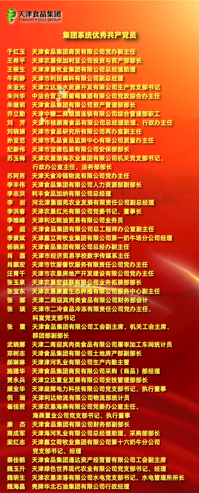 天津食品集團召開“兩優一先”表彰會暨黨史學習教育專題黨課