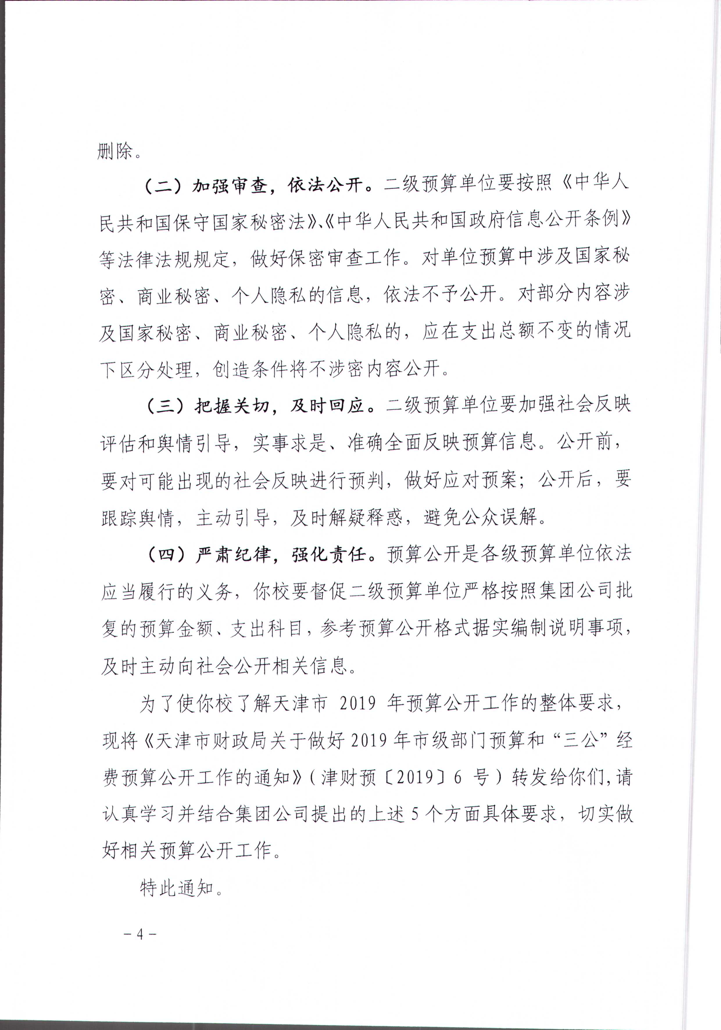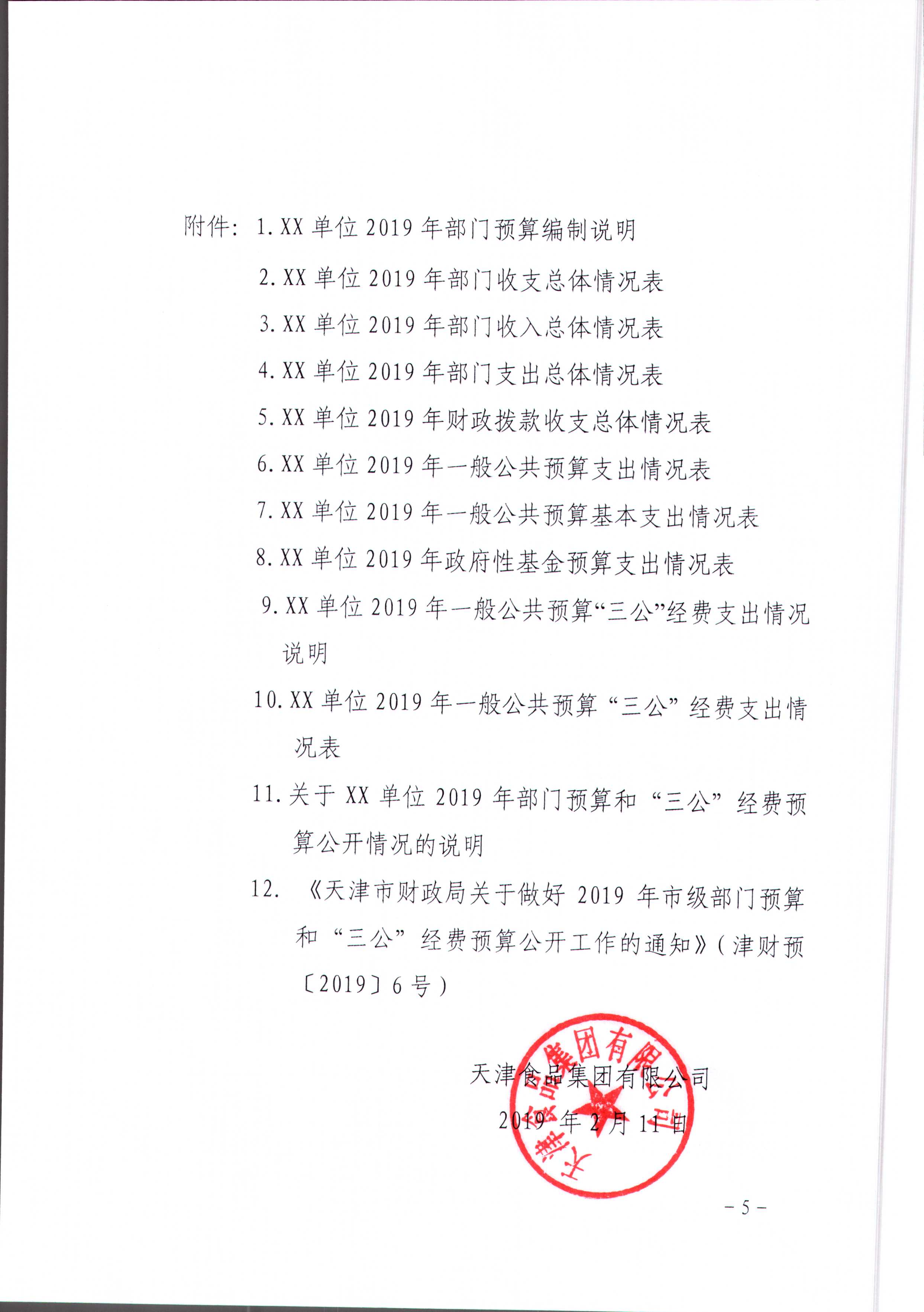 天津食品集團關于轉發《天津市財政局關于做好2019年市級部門預算和“三公”經費預算公開工作的通